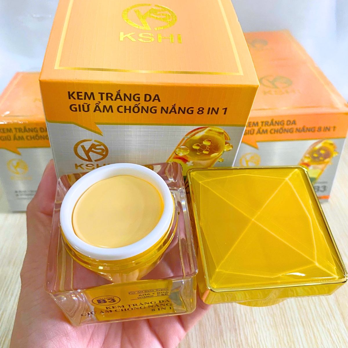 Kem trắng da, giữ ẩm, chống nắng KSHI là sự kết hợp tinh tế giữa các thành phần dưỡng trắng, cấp ẩm và bảo vệ da toàn diện, mang đến làn da mịn màng, tươi sáng và rạng rỡ mỗi ngày.
