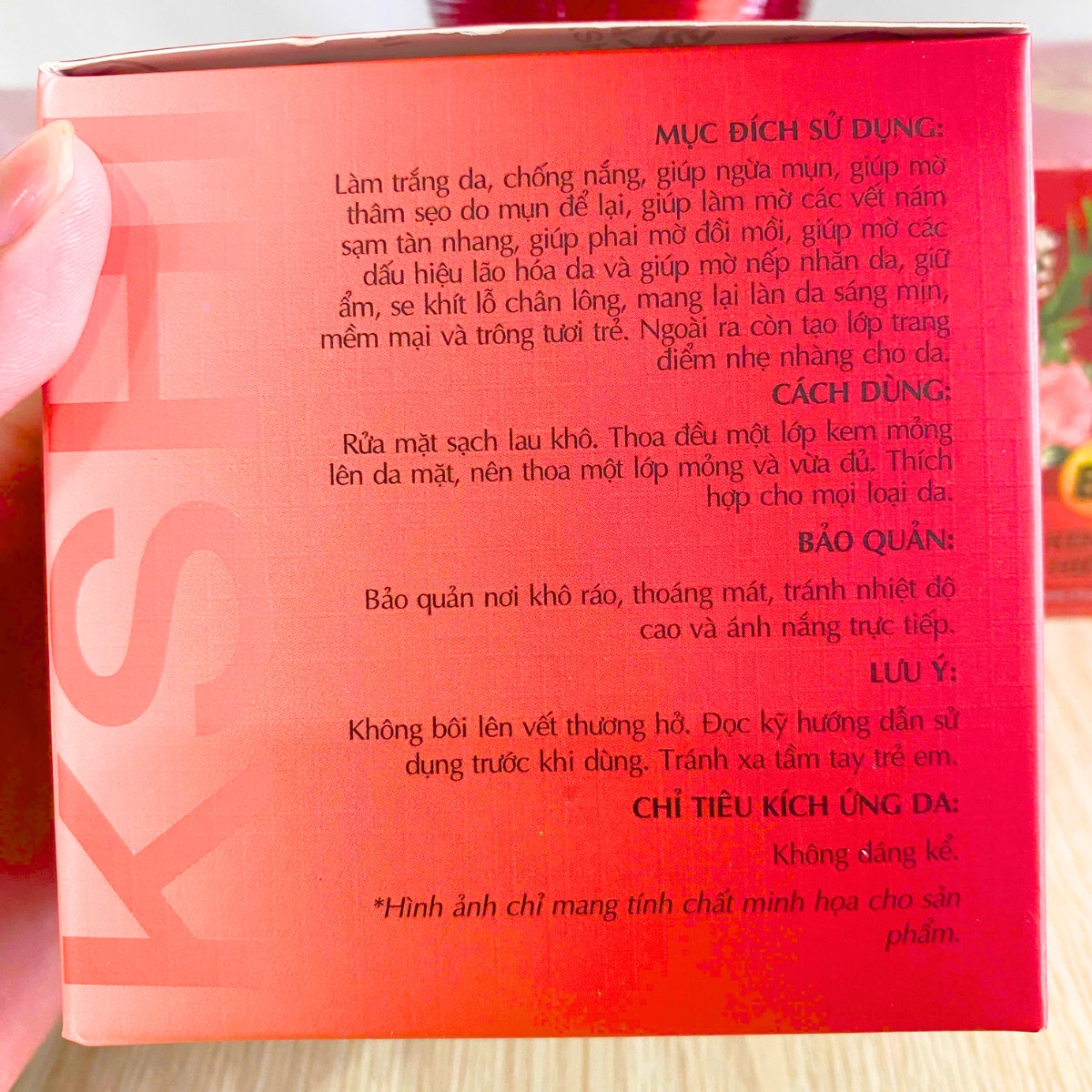 - Kem KSHI giúp làm mờ các dấu hiệu lão hóa là giải pháp chăm sóc da chuyên sâu, giúp phục hồi làn da mệt mỏi, giảm nếp nhăn, thâm nám, đốm nâu và lấy lại sự căng mướt, rạng rỡ tự nhiên.