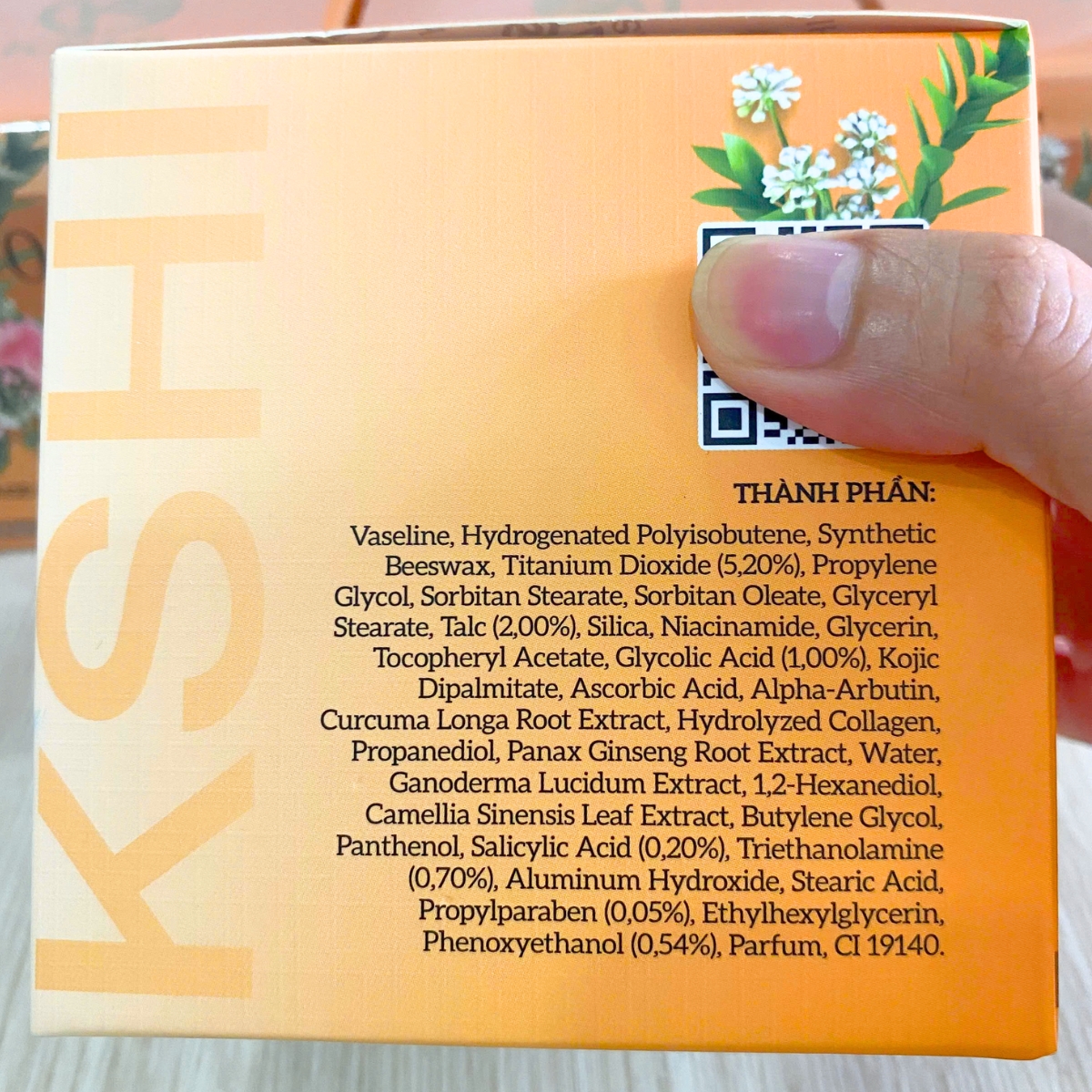 - Kem mờ nám KSHI là giải pháp dưỡng da đa tác động, kết hợp hoạt chất làm sáng hiện đại và chiết xuất thiên nhiên quý giá, giúp cải thiện rõ rệt tình trạng nám, tàn nhang, đồi mồi và ngăn ngừa hình thành sắc tố mới, mang lại làn da sáng mịn, rạng rỡ và tươi trẻ.