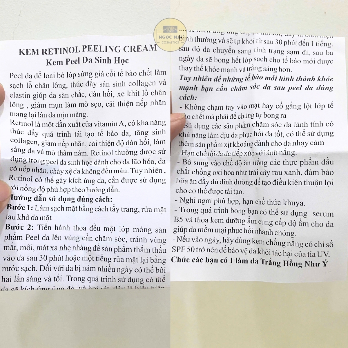 - Bước 2: Tiến hành thoa đều một lớp mỏng sản phẩm Peel da lên vùng cần chăm sóc, tránh vùng mắt, môi, mát xa nhẹ nhàng để sản phẩm thẩm thấu vào da sau 30 phút hoặc một tiếng rửa mặt lại bằng nước sạch. Đối với da bị nám nhiều ngày có thể bôi hai lần sáng và tối. Trong quá trình sử dụng có thể da sẽ kích ứng ửng đỏ và hơi rát, đây là biểu hiện bình thường và sẽ tự khỏi từ sau 30 phút đến 1 tiếng. sau đó da chuyển sang tình trạng sạm đi, sau ba ngày da sẽ bong hết lớp sạch cho tế bào mới được thay thế khỏe mạnh và trắng sáng hơn.