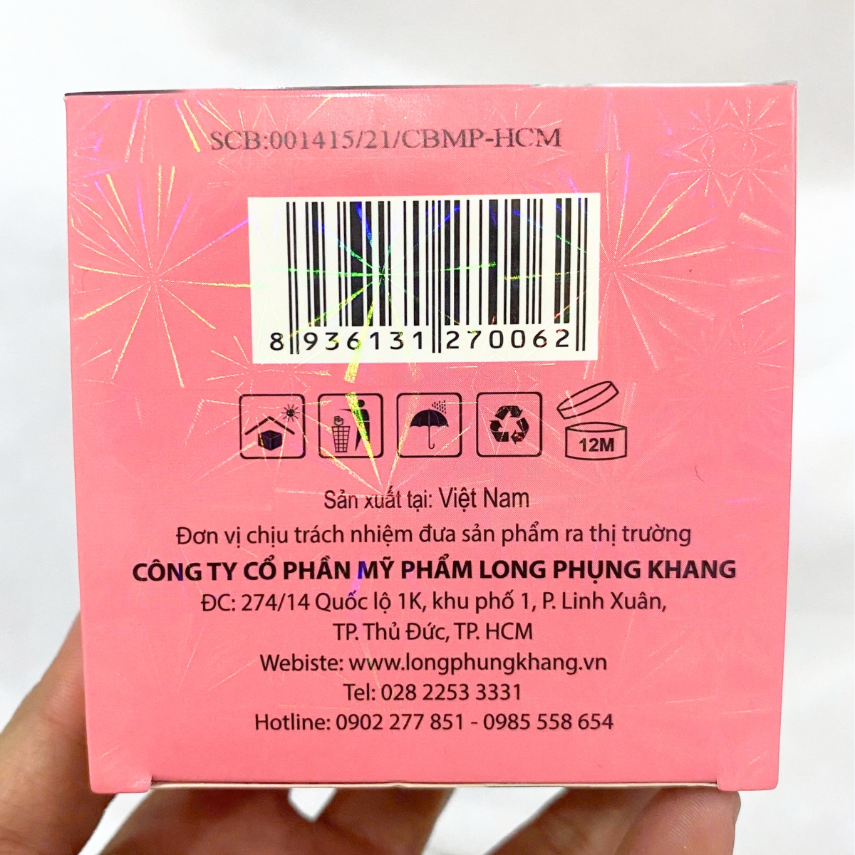 Chịu trách nhiệm sản xuất: CÔNG TY CỔ PHẨN MỸ PHẨM LONG PHỤNG KHANG