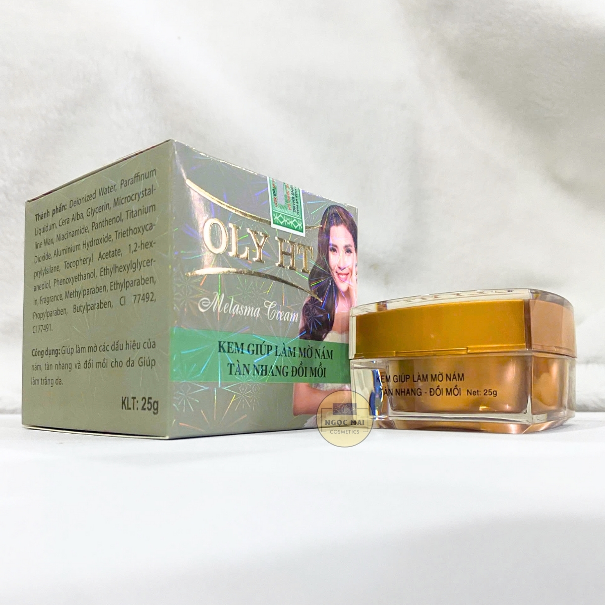 * CAM KẾT TỪ NHÀ BÁN HÀNG - MỸ PHẨM NGỌC MAI: "Chúng tôi cam kết với Quý khách hàng Kem ngừa nám, Tàn nhang, Đồi mồi, Trắng da OLY HT của chúng tôi kinh doanh là hàng của công ty, nguồn gốc rõ ràng và được Sở Y Tế cấp giấp phép lưu hành trên toàn Quốc. Nếu phát hiện sản phẩm của chúng tôi là hàng giả, hàng nhái chúng tôi xin hoàn tiền 200% giá trị sản phẩm".