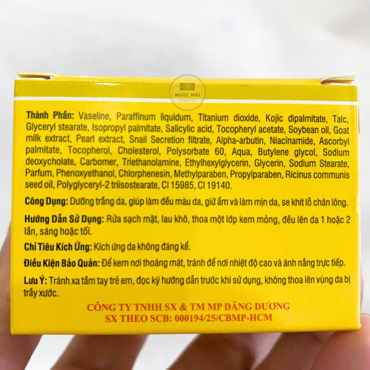 + Trên hộp có TEM CHỐNG HÀNG GIẢ (hình bầu dục) của Mỹ phẩm Đăng Dương ( Đăng Dương Cosmetics)