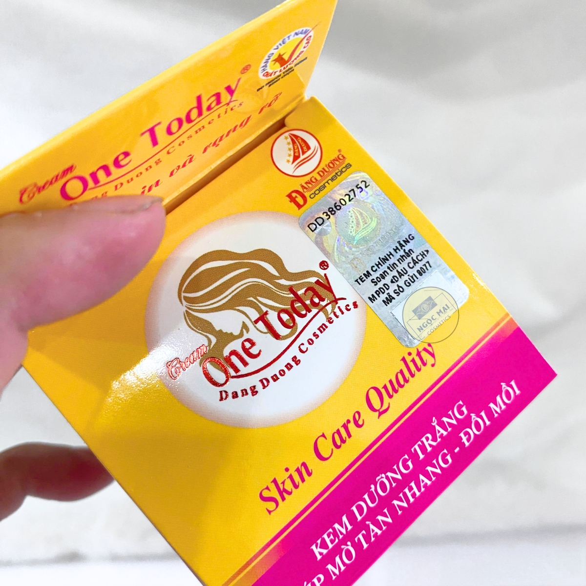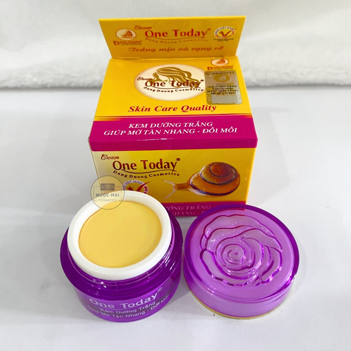 * CAM KẾT TỪ NHÀ BÁN HÀNG - MỸ PHẨM NGỌC MAI: "Chúng tôi cam kết với Quý khách hàng Kem dưỡng trắng, ngừa tàn nhang, Đồi mồi ONE TODAY của chúng tôi kinh doanh là hàng của công ty, nguồn gốc rõ ràng và được Sở Y Tế cấp giấp phép lưu hành trên toàn Quốc. Nếu phát hiện sản phẩm của chúng tôi là hàng không chính hãng chúng tôi xin hoàn tiền 200% giá trị sản phẩm".