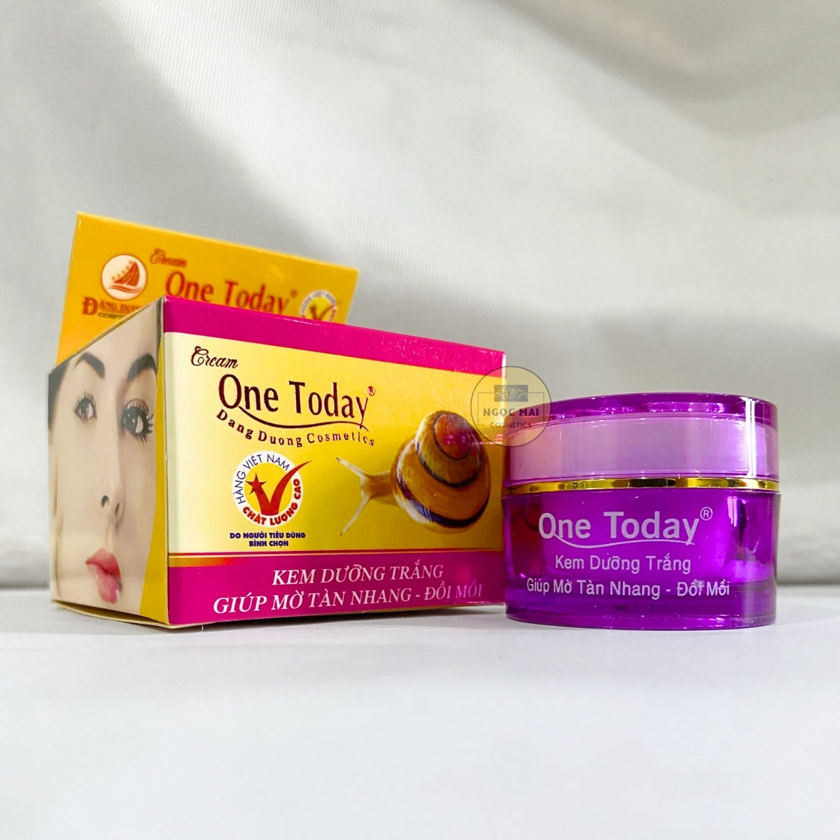 Công dụng: Kem dưỡng trắng, Ngừa tàn nhang, Đồi mồi ONE TODAY với tinh chất ốc sên, bột ngọc trai được kết hợp hiệu quả làm mờ đi các vết nám, tàn nhang, đồi mồi ngăn ngừa các tác nhân gây nám cho da. Kem mềm mịn dễ thẩm thấu, nuôi dưỡng da từ bên trong giúp tái tạo làn da mới trắng sán, mịn màng và mềm mại.