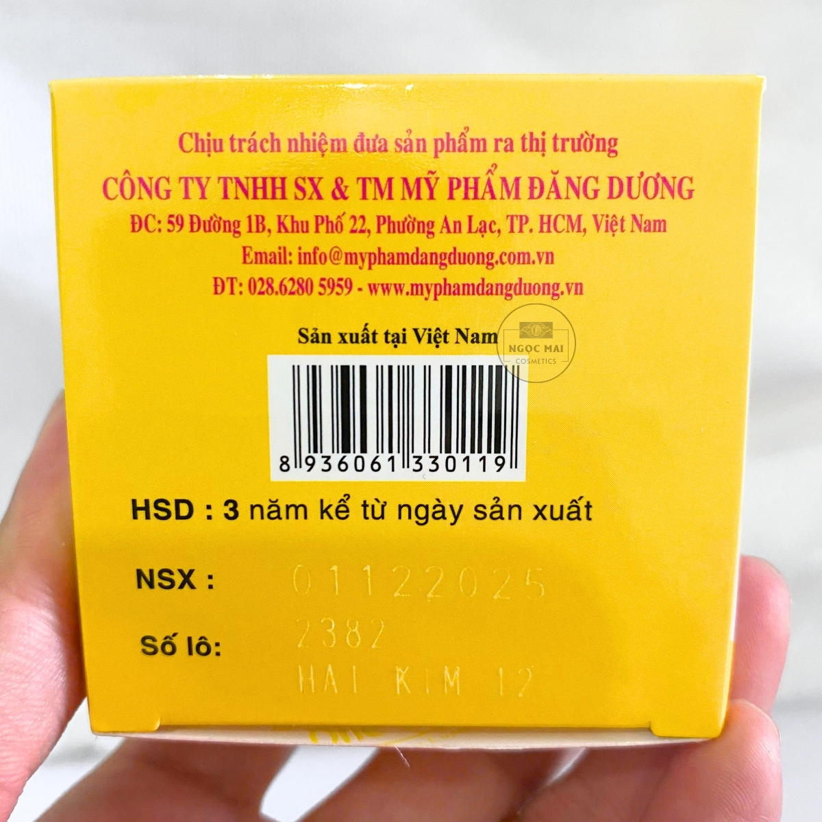 + Trên hộp có TEM CHỐNG HÀNG GIẢ (hình bầu dục) của Mỹ phẩm Đăng Dương ( Đăng Dương Cosmetics)