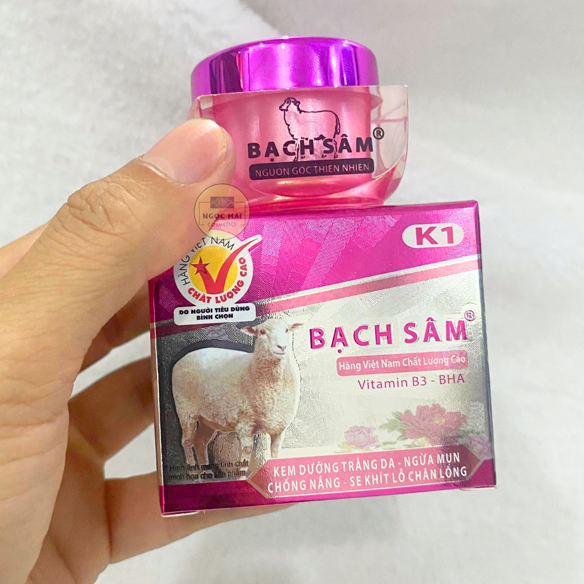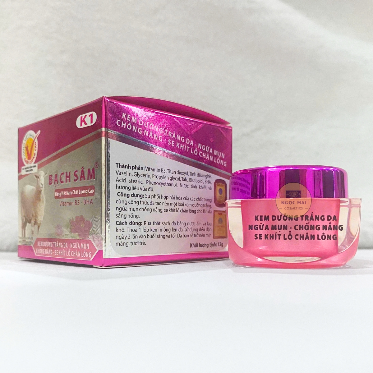 * CAM KẾT TỪ NHÀ BÁN HÀNG - MỸ PHẨM NGỌC MAI: "Chúng tôi cam kết với Quý khách hàng Kem dưỡng trắng da - Ngừa mụn - Chống nắng - Se khít lỗ chân lông Bạch Sâm K1 của chúng tôi kinh doanh là hàng của công ty, nguồn gốc rõ ràng và được Sở Y Tế cấp giấp phép lưu hành trên toàn Quốc. Nếu phát hiện sản phẩm của chúng tôi là hàng không chính hãng chúng tôi xin hoàn tiền 200% giá trị sản phẩm".