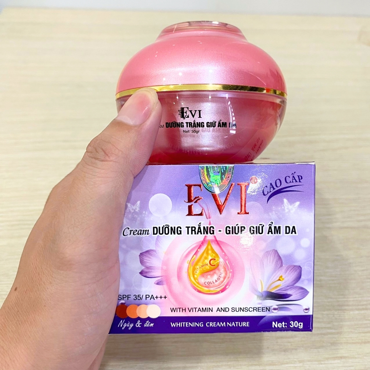 Lưu ý: Vì lý do bản quyền nên Kem dưỡng trắng, giữ ẩm da E-VI mẫu mới nhất không có chữ 9 in 1 như mẫu cũ. Quý khách lưu ý, kiểm tra hàng trước khi thanh toán, tránh trường hợp mua phải hàng cũ, hàng tồn kho.