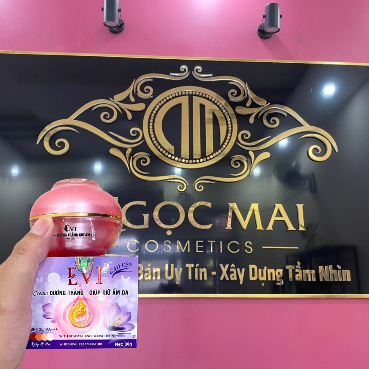 CAM KẾT TỪ NHÀ BÁN HÀNG - MỸ PHẨM NGỌC MAI: "Chúng tôi cam kết với Quý khách hàng Kem dưỡng trắng - Giữ ẩm da E-VI của chúng tôi kinh doanh là hàng của công ty, nguồn gốc rõ ràng và được Sở Y Tế cấp giấp phép lưu hành trên toàn Quốc. Nếu phát hiện sản phẩm của chúng tôi là hàng KHÔNG CHÍNH HÃNG chúng tôi xin hoàn tiền 200% giá trị sản phẩm".
