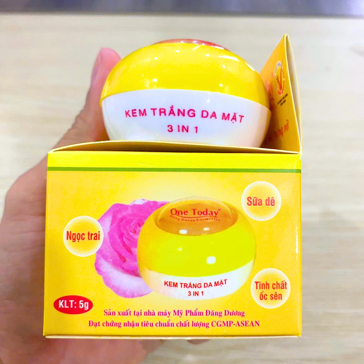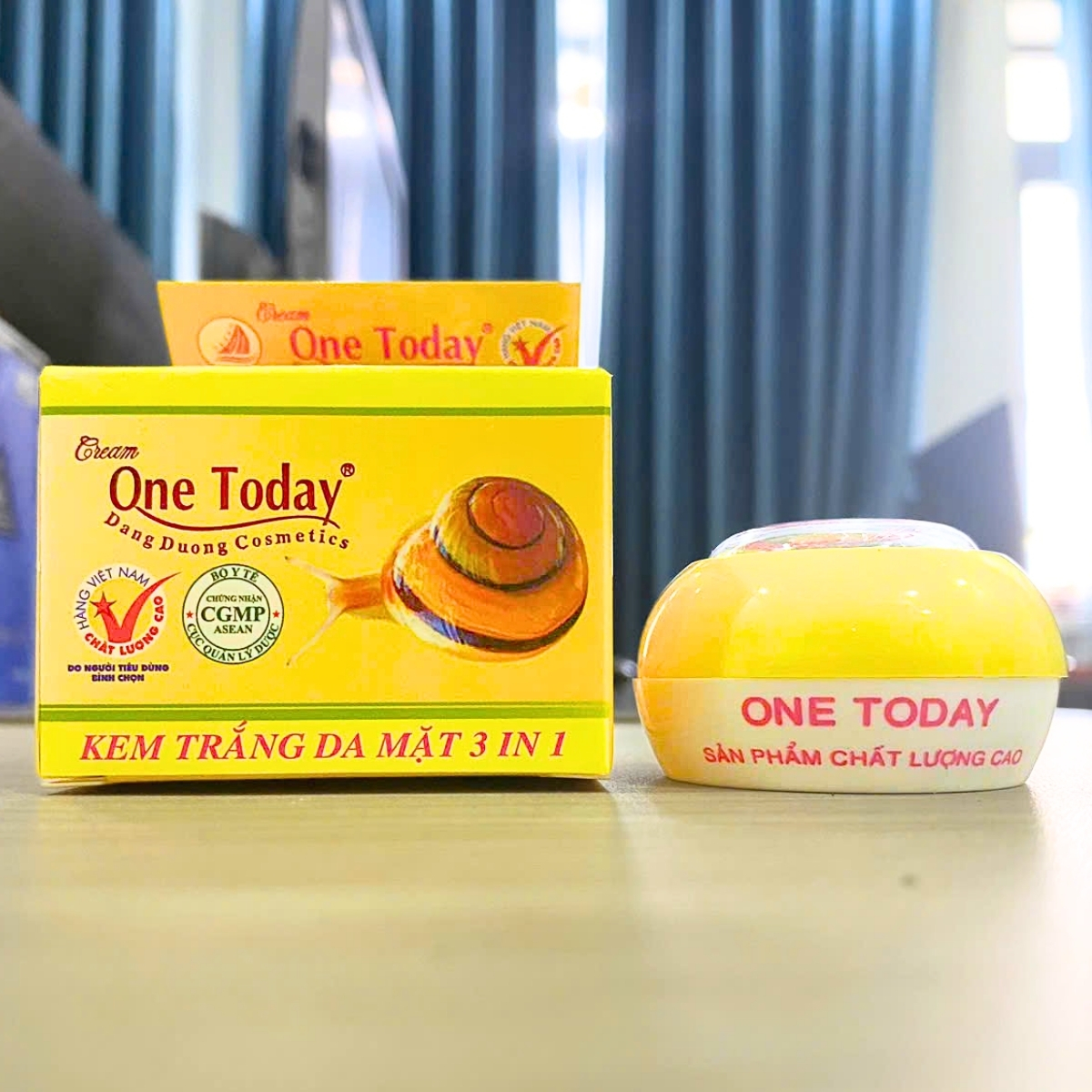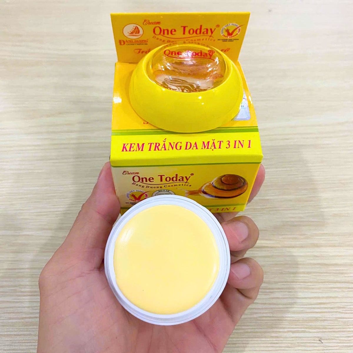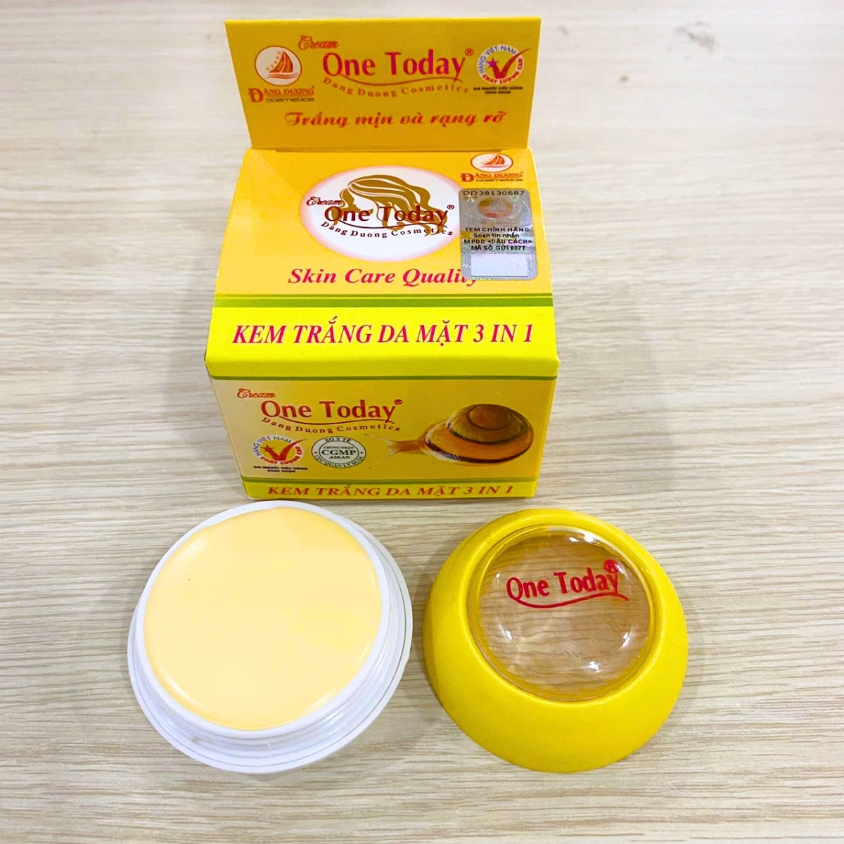 Công Dụng: Kem trắng da mặt 3 in 1 ONE TODAY kích thích tố dinh dưỡng được chiết xuất từ các loại thảo mộc,phối hợp với tinh chất ốc sên và vitamin, làm trắng da gấp bội, giảm nám hình thành trên da, thu nhỏ lỗ chân lông cho làn da trắng da trắng mịn tự nhiên.