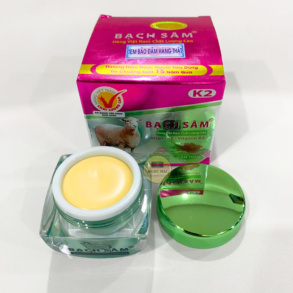 * CAM KẾT TỪ NHÀ BÁN HÀNG - MỸ PHẨM NGỌC MAI: "Chúng tôi cam kết với Quý khách hàng Kem mụn, trắng da, giảm thâm, mờ sẹo Bạch Sâm K2 của chúng tôi kinh doanh là hàng của công ty, nguồn gốc rõ ràng và được Sở Y Tế cấp giấp phép lưu hành trên toàn Quốc. Nếu phát hiện sản phẩm của chúng tôi là hàng không chính hãng chúng tôi xin hoàn tiền 200% giá trị sản phẩm".