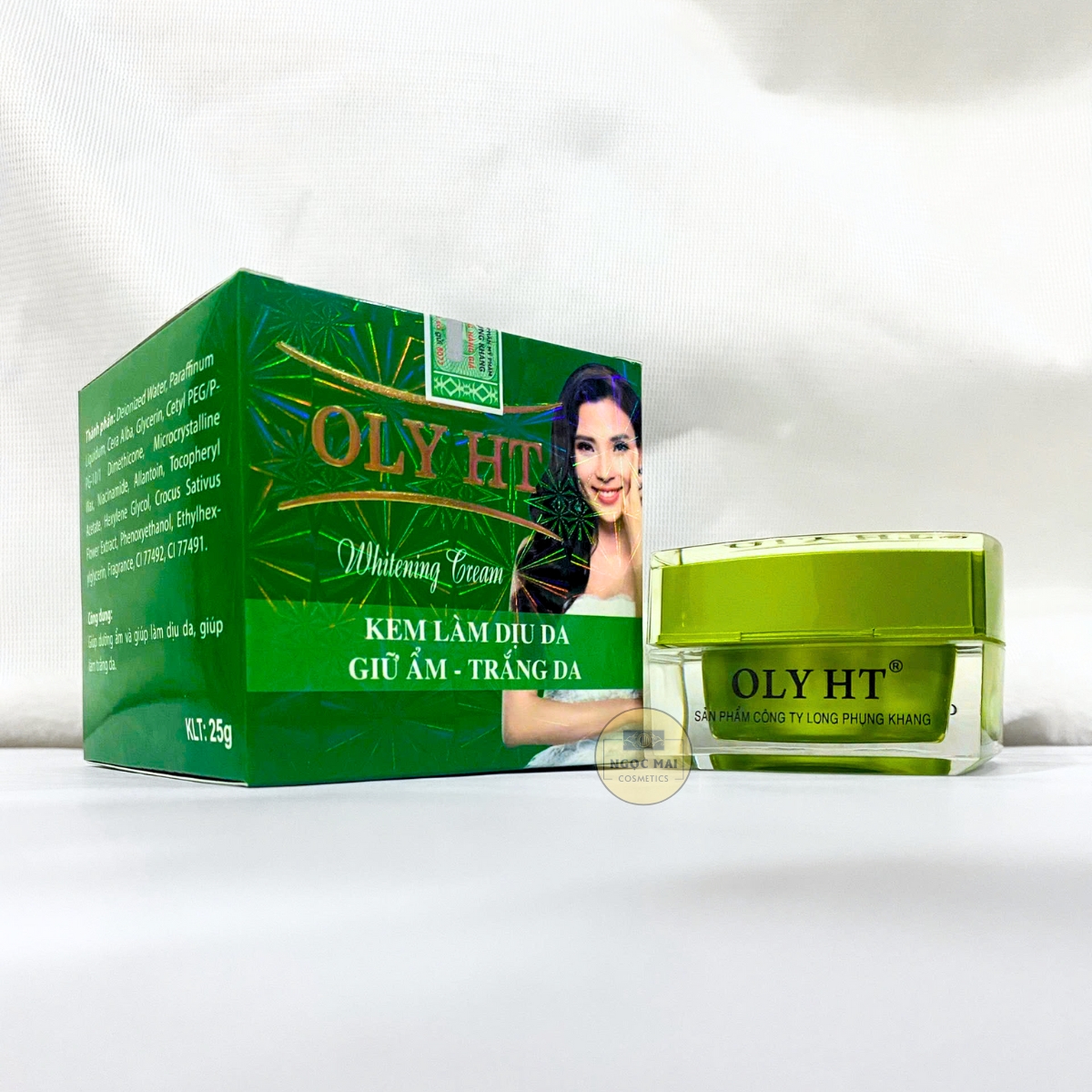 Công dụng: Kem phục hồi da hư tổn, Giữ ẩm, Trắng da OLY HT với những dược liệu từ thiên nhiên giúp da giữ ẩm tốt từ sâu bên trong làm cho da trắng hồng lên giữ độ ẩm cần thiết , se khít lỗ chân lông , phục hồi và nuôi dưỡng cho làn da khoẻ mạnh và tươi trẻ, giữ gìn làn da luôn mềm mại , mịn màng dễ chịu . Nguyên liệu được nhập từ các nước trên thế giới .