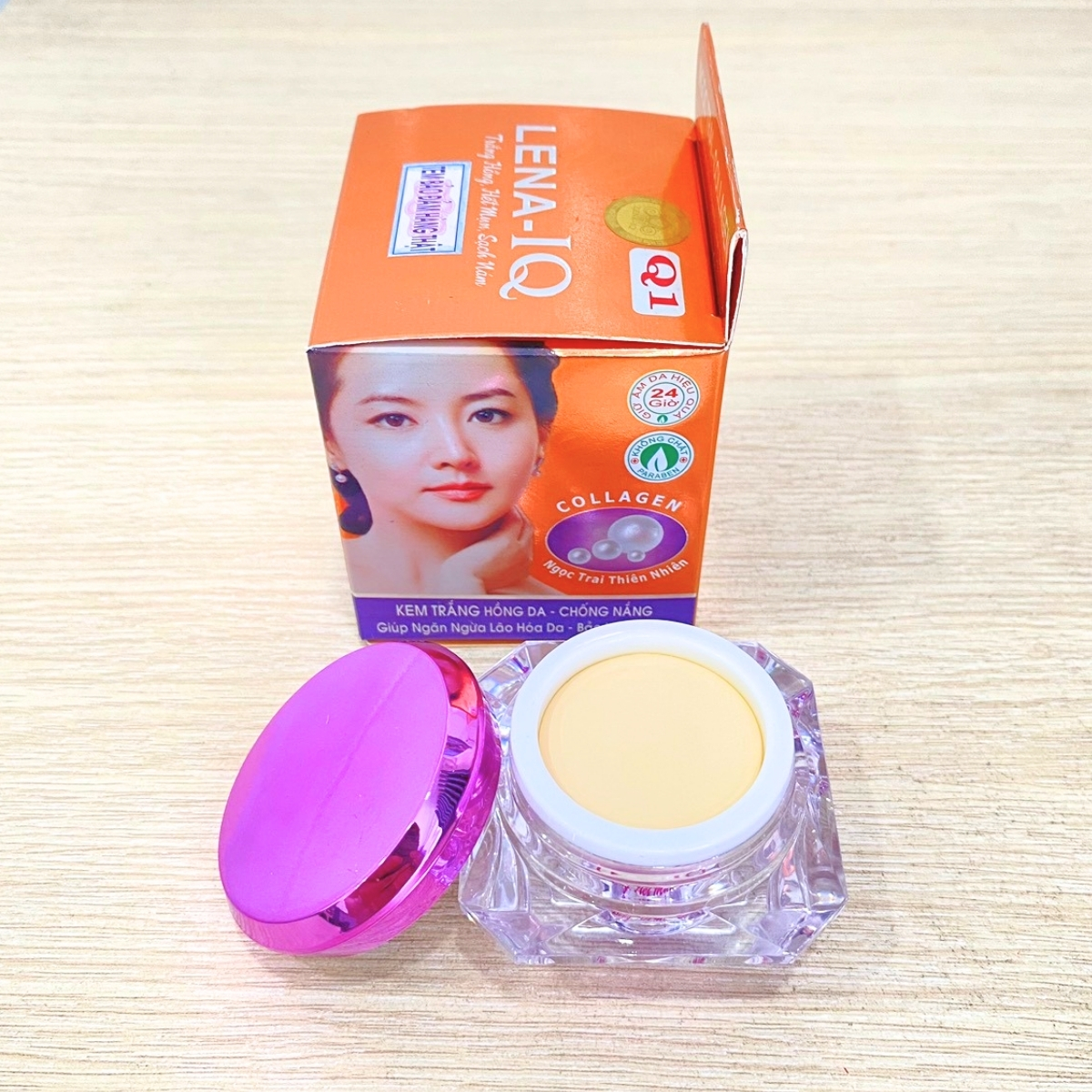 Công dụng: Kem dưỡng trắng hồng, Chống nắng, Ngăn lão hóa, Bảo vệ da Q1 LENA-IQ làm trắng mịn da, tái tạo bề mặt, cung cấp độ ẩm, ngăn mất nước và làm giảm sắc tố đen giúp da trắng sáng tự nhiên. Nuôi dưỡng làn da săn chắc do tạo lớp rào chắn bảo vệ da tăng cường tái tạo collagen duy trì làn da tươi trẻ. Hiệu quả sau 7 ngày sử dụng.