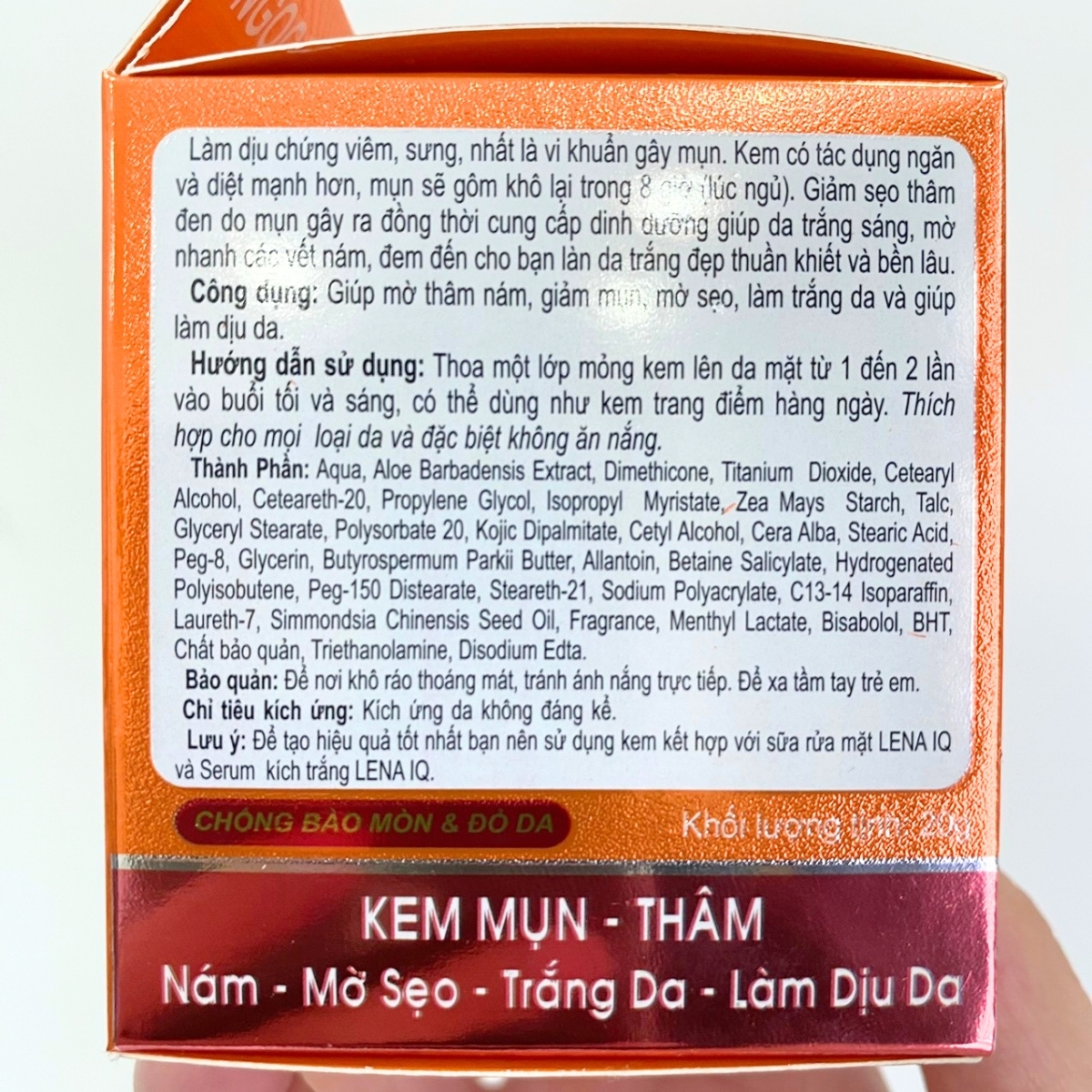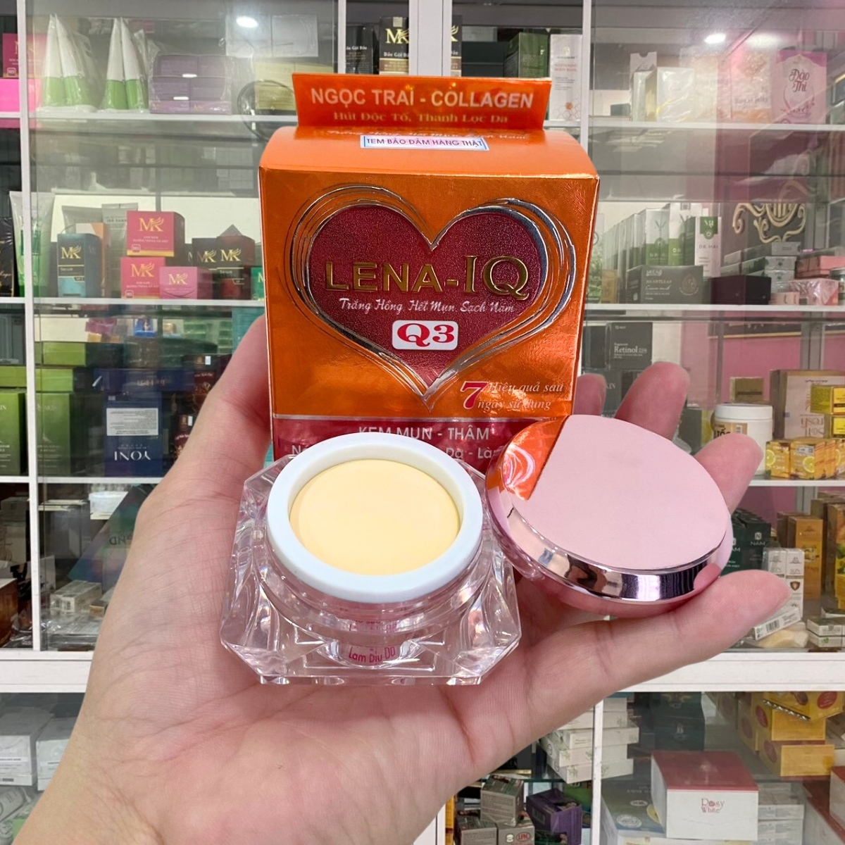 * CAM KẾT TỪ NHÀ BÁN HÀNG - MỸ PHẨM NGỌC MAI: "Chúng tôi cam kết với Quý khách hàng Kem trị mụn, Thâm, Nám, Mờ sẹo, Trắng da, Làm dịu da Q3 LENA-IQ của chúng tôi là hàng của công ty, nguồn gốc rõ ràng và được Sở Y Tế cấp giấp phép lưu hành trên toàn Quốc. Nếu phát hiện sản phẩm của chúng tôi là hàng KHÔNG CHÍNH HÃNG chúng tôi xin hoàn tiền 200% giá trị sản phẩm".