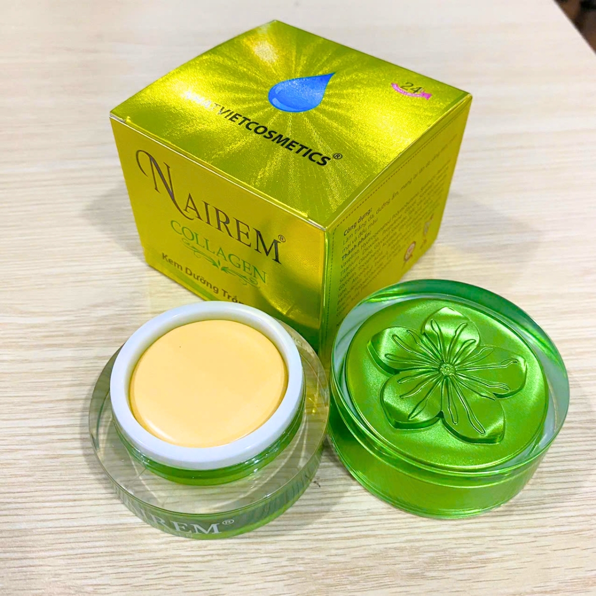 Kem dưỡng trắng, Mịn da Collagen NAIREM - 13g cung cấp các hoạt chất chiết xuất từ thiên nhiên như vitamin A, Vitamin E, nhau thai cừu thẩm thấu qua da làm tăng cường hệ miễn dịch cho da, giúp da mịn màng và săn chắc. Với dưỡng chất Collagen tác dụng làm trắng ngăn ngừa lão hóa, mang lại làn da trắng hồng mịn màng tự nhiên. Bạn có thể cảm nhận được một làn da tươi trẻ, mịn màng khi sử dụng sản phẩm. Hiệu quả 100%.