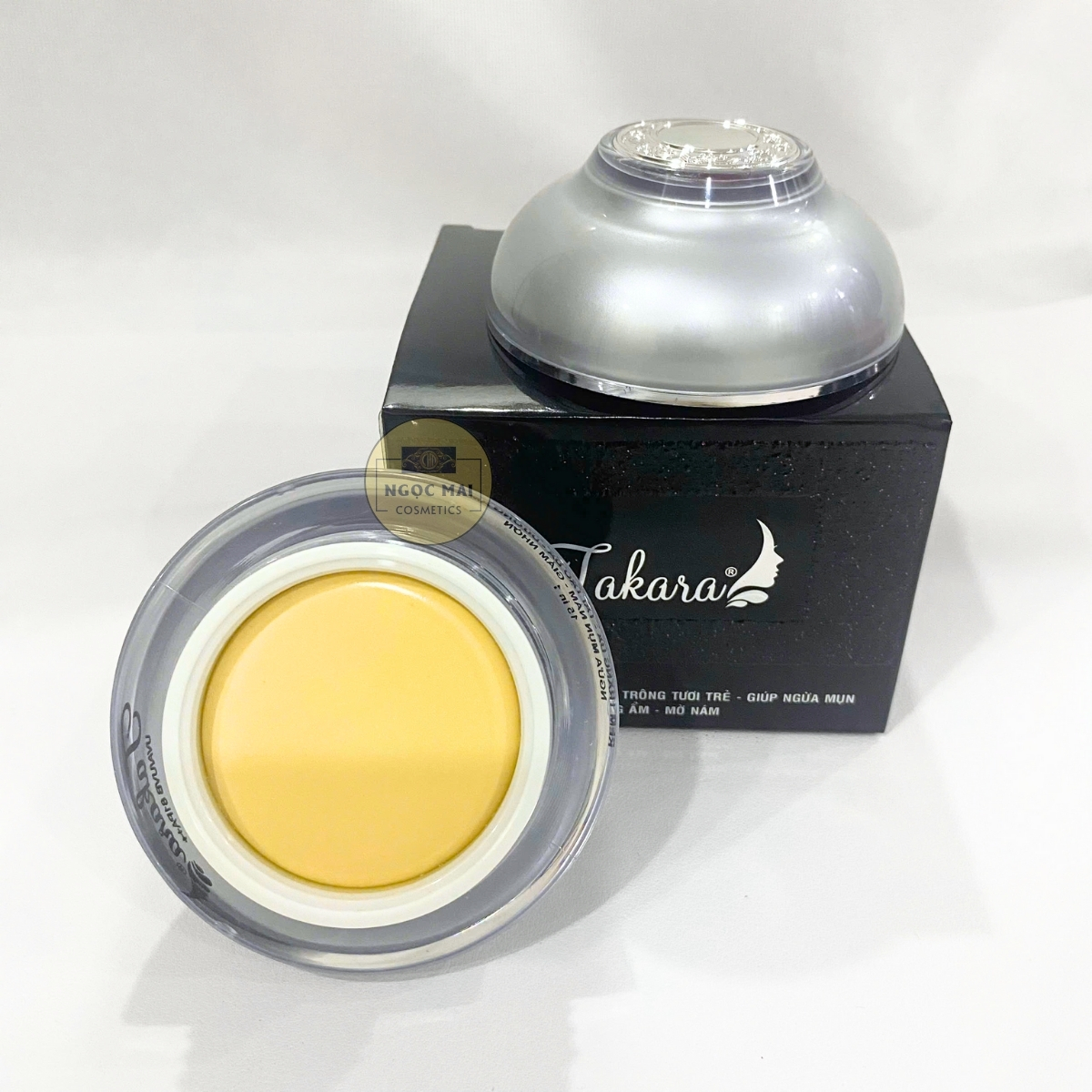 CÔNG DỤNG: Kem dưỡng trắng - Tái tạo - Dưỡng ẩm - Ngừa mụn nám - Giảm nhờn 15 in 1 TAKARA được phối chế từ các thảo mộc thiên nhiên, được sản xuất dựa trên dây chuyền công nghệ tiên tiến hiện đại nhất hiện nay có những công dụng chính sau: