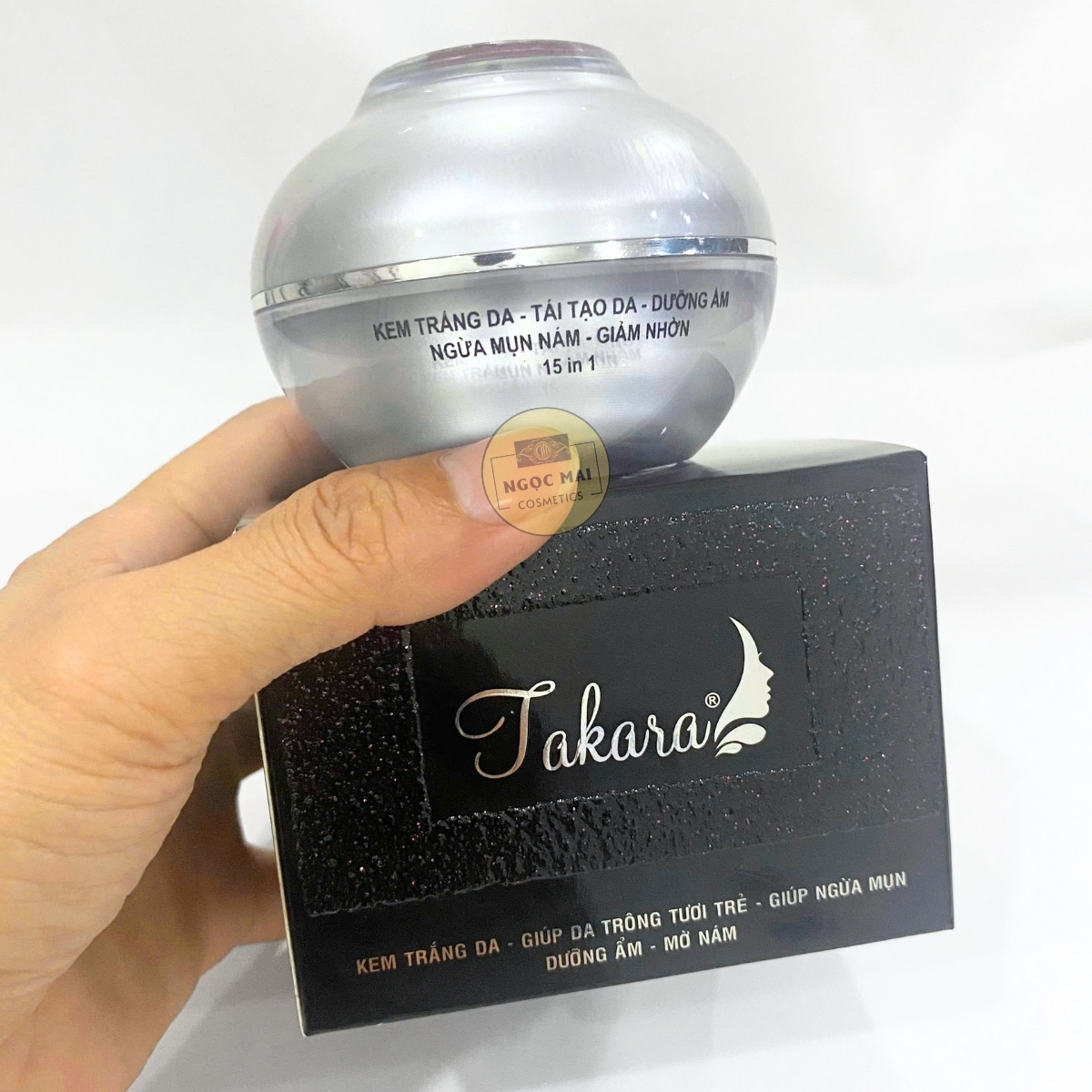 * CAM KẾT TỪ NHÀ BÁN HÀNG - MỸ PHẨM NGỌC MAI: "Chúng tôi cam kết với Quý khách hàng Kem dưỡng trắng - Tái tạo - Dưỡng ẩm - Ngừa mụn nám - Giảm nhờn 15 in 1 TAKARA của chúng tôi kinh doanh là hàng của công ty, nguồn gốc rõ ràng và được Sở Y Tế cấp giấp phép lưu hành trên toàn Quốc. Nếu phát hiện sản phẩm của chúng tôi là hàng giả, hàng nhái chúng tôi xin hoàn tiền 200% giá trị sản phẩm".