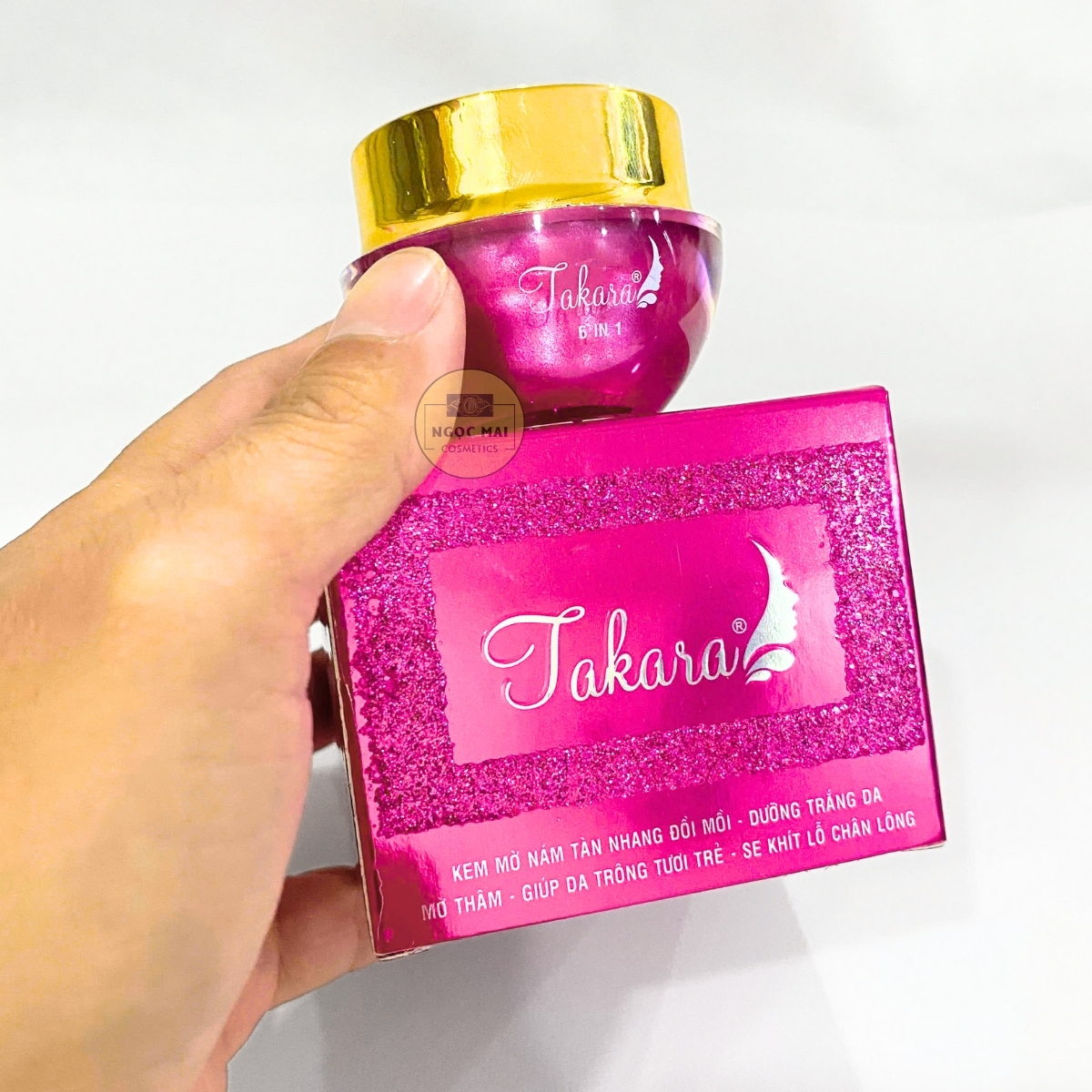 * CAM KẾT TỪ NHÀ BÁN HÀNG - MỸ PHẨM NGỌC MAI: "Chúng tôi cam kết với Quý khách hàng Kem Nám, Tàn nhang, Đồi mồi 6 in 1 TAKARA của chúng tôi kinh doanh là hàng của công ty, nguồn gốc rõ ràng và được Sở Y Tế cấp giấp phép lưu hành trên toàn Quốc. Nếu phát hiện sản phẩm của chúng tôi là hàng không chính hãng chúng tôi xin hoàn tiền 200% giá trị sản phẩm".